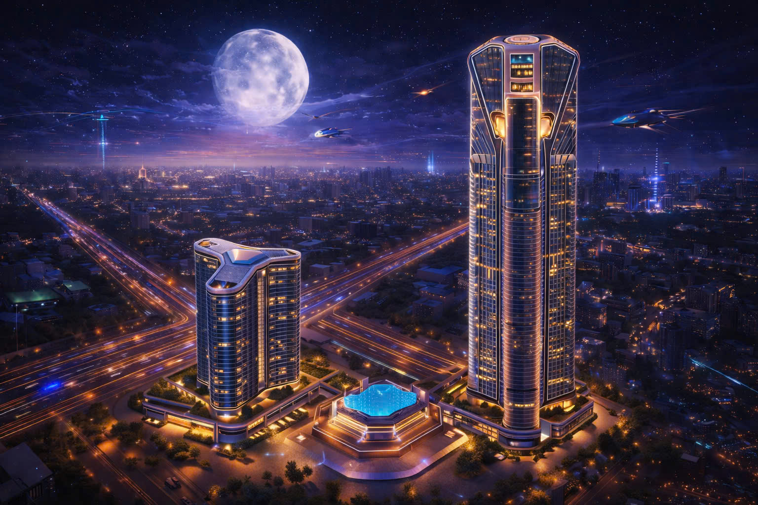 Phối cảnh tổ hợp chung cư 75 tầng thủy nguyên Dragon 75 Complex gồm 2 dự án Dragon Jade 75 và Dragon Amber do Tập đoàn DOJI triển khai tại Bắc sông Cấm.